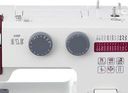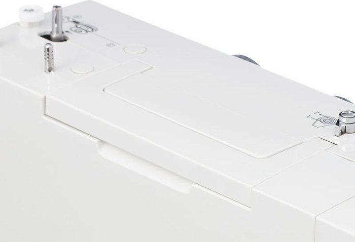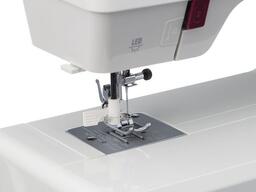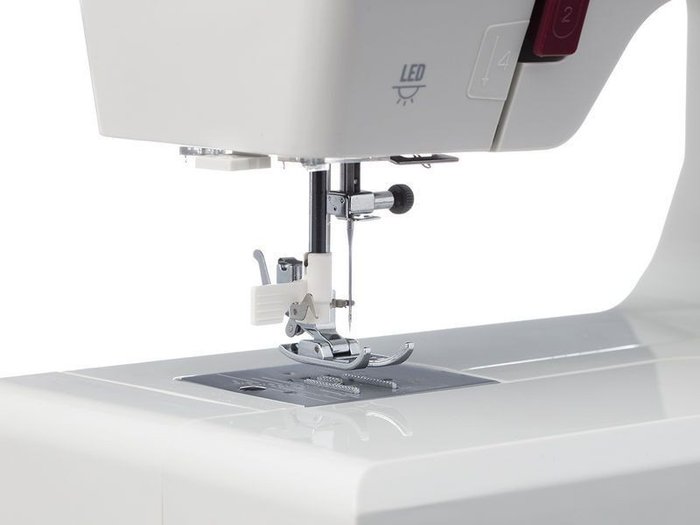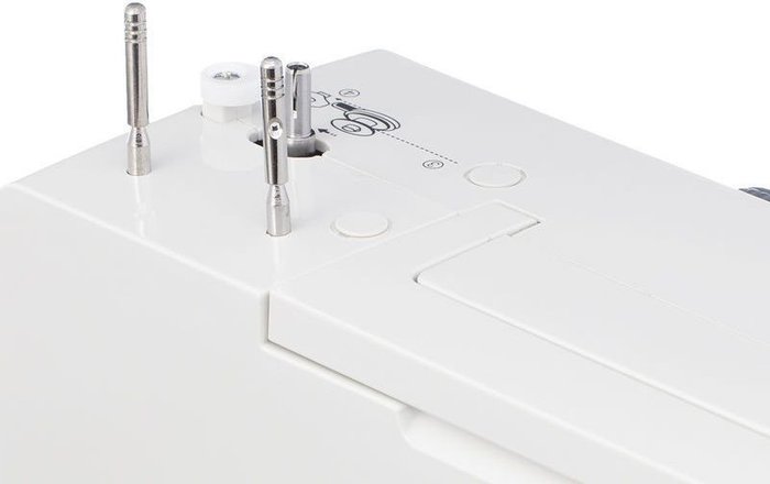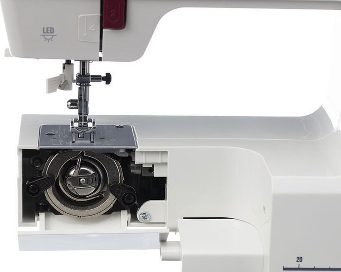 КомплектацияУниверсальная лапкаРамка для выполнения петлиНаправитель для потайного шваЛапка для молнии двухсторонняяЛапка для пришивания пуговицШпульки — 4 шт. (3 и 1 в машине)Набор игл — 3 шт.Отвёртка-ключШтопальная пластинаВспарыватель/щёточка для чисткиРасширительный столикМягкий чехолПедаль