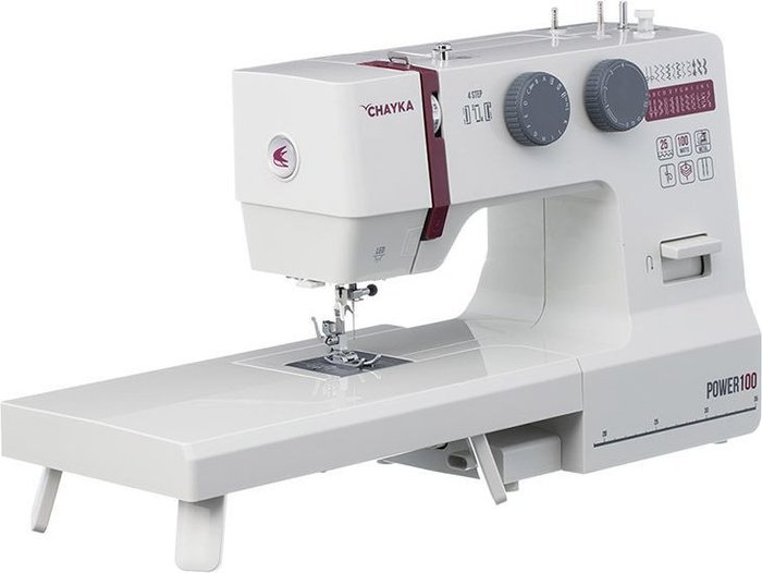Электромеханическая швейная машина CHAYKA Power100 идеально подходит для домашнего использования, предлагая простоту и надёжность в шитье.Эта модель выполняет 25 основных швейных операций, включая петлю-полуавтомат, что позволяет осуществлять полноценные швейные проекты. CHAYKA Power100 оснащена классическим вертикальным челночным устройством для эффективной работы. Удобный переключатель швейных операций находится на уровне глаз, облегчая управление машиной. С помощью клавиши реверс, вы сможете шить в обратном направлении или сделать закрепку.CHAYKA Power100 оснащена сервомотором мощностью 100Вт, который обеспечивает плавный контроль скорости, минимальный уровень шума, усиленный прокол иглы. Дополнительный подъём лапки поможет при работе с плотными материалами, а при работе с узкими деталями изделий используйте рабочее пространство свободного рукава.Штопальная пластина закрывает рейки нижнего транспортёра, что очень удобно для выполнения свободно-ходовой стёжки и пришивания пуговиц. В комплекте с машиной поставляются все необходимые аксессуары и расширительный столик, что делает работу с машиной еще более комфортной.Электромеханическая швейная машина CHAYKA Power100 идеально подходит для домашнего использования, предлагая простоту и надёжность в шитье.Эта модель выполняет 25 основных швейных операций, включая петлю-полуавтомат, что позволяет осуществлять полноценные швейные проекты. CHAYKA Power100 оснащена классическим вертикальным челночным устройством для эффективной работы. Удобный переключатель швейных операций находится на уровне глаз, облегчая управление машиной. С помощью клавиши реверс, вы сможете шить в обратном направлении или сделать закрепку.CHAYKA Power100 оснащена сервомотором мощностью 100Вт, который обеспечивает плавный контроль скорости, минимальный уровень шума, усиленный прокол иглы. Дополнительный подъём лапки поможет при работе с плотными материалами, а при работе с узкими деталями изделий используйте рабочее пространство свободного рукава.Штопальная пластина закрывает рейки нижнего транспортёра, что очень удобно для выполнения свободно-ходовой стёжки и пришивания пуговиц. В комплекте с машиной поставляются все необходимые аксессуары и расширительный столик, что делает работу с машиной еще более комфортной.