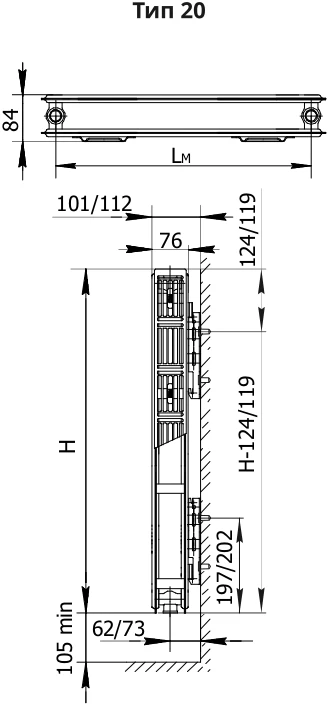 Стальной радиатор Prado Style Classic 20x300x1000 V