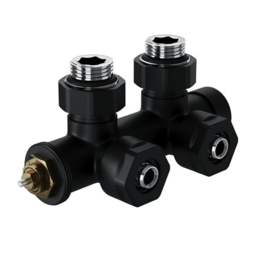 Узел нижнего подключения термостатический Design Pro предназначен для нижнего подключения радиаторов без встроенной термостатической вставки. Размер подключения к радиатору 1/2”. К системе отопления набор подключается через монтажную латунную трубку диаметром 15 мм. Данный способ подключения используется при скрытом монтаже трубопроводов отопления из металлопластика или сшитого полиэтилена с выводом из стены. Узел нижнего подключения термостатический угловой серии Design Pro поставляется в необходимой для чистового монтажа комплектации: клапан термостатический для установки на подающий трубопровод, запорный клапан для установки на обратный трубопровод, 2 гайки-фитинга для подключения клапанов к монтажной трубке 15 мм и 2 цельных латунных отражателя с внутренним резиновым уплотнением внутренним диаметром 15,2 мм. Наборы выпускаются в 3 цветах: белый, черный, хром. Оборудование рассчитано на максимальное рабочее давление до 8 бар и максимальную рабочую температуру 100 С, что позволяет использовать набор в любой системе отопления со скрытой прокладкой трубопровода. Подключение термоголовки к термостатическому клапану - резьбовое, М30х1,5. Клапаны оснащены механизмом преднастройки, что позволяет их использовать в проектных решениях. Предназначен для автоматического поддержания температуры в помещении (в сборе с термоголовкой, приобретается отдельно).