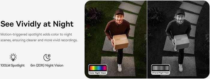 ✅Ключевые характеристикиУличная IP-камера обеспечивает круглосуточную охрану благодаря солнечному питанию. Разрешение 2K и широкий угол обзора 135° позволяют фиксировать детали на больших участках территории. Камера оснащена цветной ночной съёмкой и системой умного обнаружения движения для точного контроля периметра.✅Преимущества и отличияВысокая степень защиты корпуса IP67 гарантирует устойчивость к погодным условиям. Установка занимает всего 5 минут, а для хранения записей используется локальная карта памяти без обязательных ежемесячных платежей. Камера поддерживает интеллектуальное выделение зон наблюдения.✅ПрактичностьРаботает с мобильными приложениями на iOS и Android, а также интегрируется с системами умного дома Alexa и Google Home. Встроенный микрофон и динамик обеспечивают двустороннюю аудиосвязь, а управление функциями доступно через приложение.✅УникальностьПитание от встроенного аккумулятора и солнечной панели позволяет забыть о проводах и сетевом подключении. Камера поддерживает запись на карту памяти до 256 ГБ, а умные алгоритмы распознают только важные события, минимизируя ложные срабатывания.✅Ключевые характеристикиУличная IP-камера обеспечивает круглосуточную охрану благодаря солнечному питанию. Разрешение 2K и широкий угол обзора 135° позволяют фиксировать детали на больших участках территории. Камера оснащена цветной ночной съёмкой и системой умного обнаружения движения для точного контроля периметра.✅Преимущества и отличияВысокая степень защиты корпуса IP67 гарантирует устойчивость к погодным условиям. Установка занимает всего 5 минут, а для хранения записей используется локальная карта памяти без обязательных ежемесячных платежей. Камера поддерживает интеллектуальное выделение зон наблюдения.✅ПрактичностьРаботает с мобильными приложениями на iOS и Android, а также интегрируется с системами умного дома Alexa и Google Home. Встроенный микрофон и динамик обеспечивают двустороннюю аудиосвязь, а управление функциями доступно через приложение.✅УникальностьПитание от встроенного аккумулятора и солнечной панели позволяет забыть о проводах и сетевом подключении. Камера поддерживает запись на карту памяти до 256 ГБ, а умные алгоритмы распознают только важные события, минимизируя ложные срабатывания.