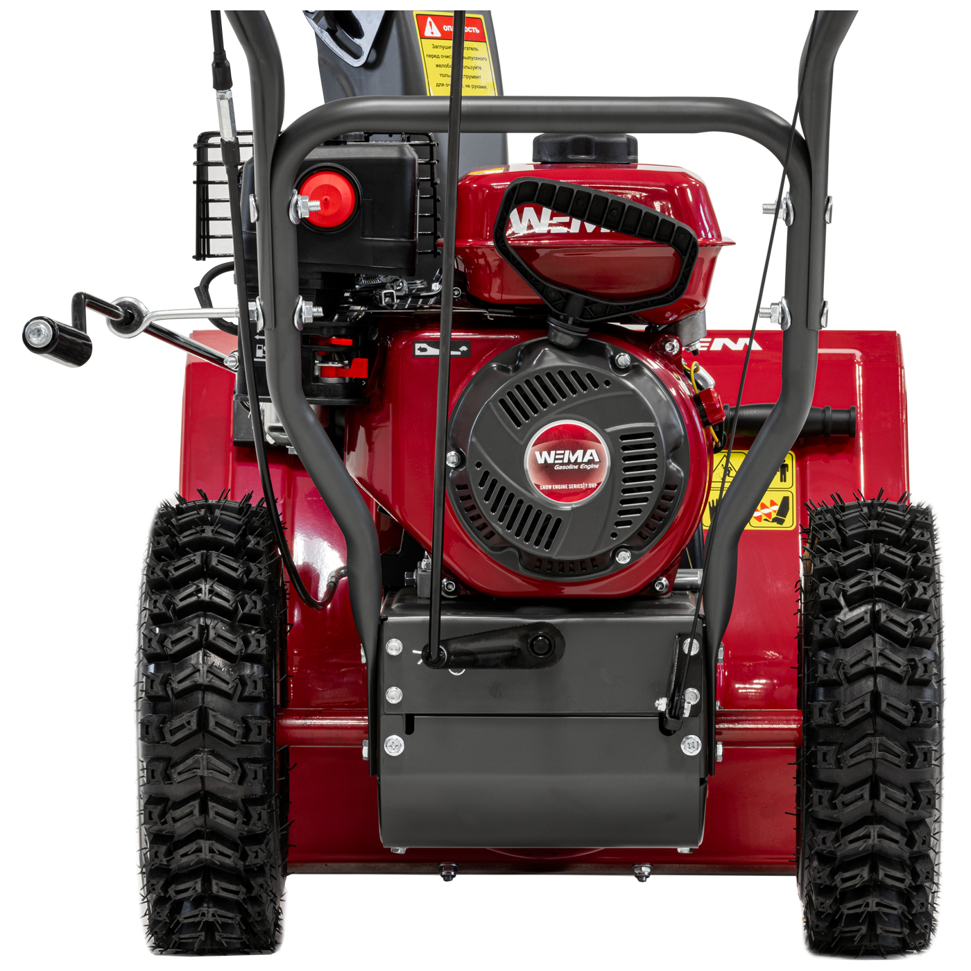 Weima WXS0722A — снегоуборочная машина бензиновая для дома или дачи, облегчит уборку территорий, очистит дорожки и подъездные пути. Двигатель WM170FS/P мощностью 7 лошадиных сил поможет справится с сугробами высотой до 425 мм и залежавшимся снегом. Ширина очистки за один проход - 56 см. Мотор адаптирован к низки температурам. Предусмотрено 6 скоростей вперед и 2 назад, что дает возможность выбрать подходящий режим работы с учетом плотности снега. Направление выброса можно регулировать, установив угол желоба в пределах 180 градусов, дальность выброса до 10 метров.