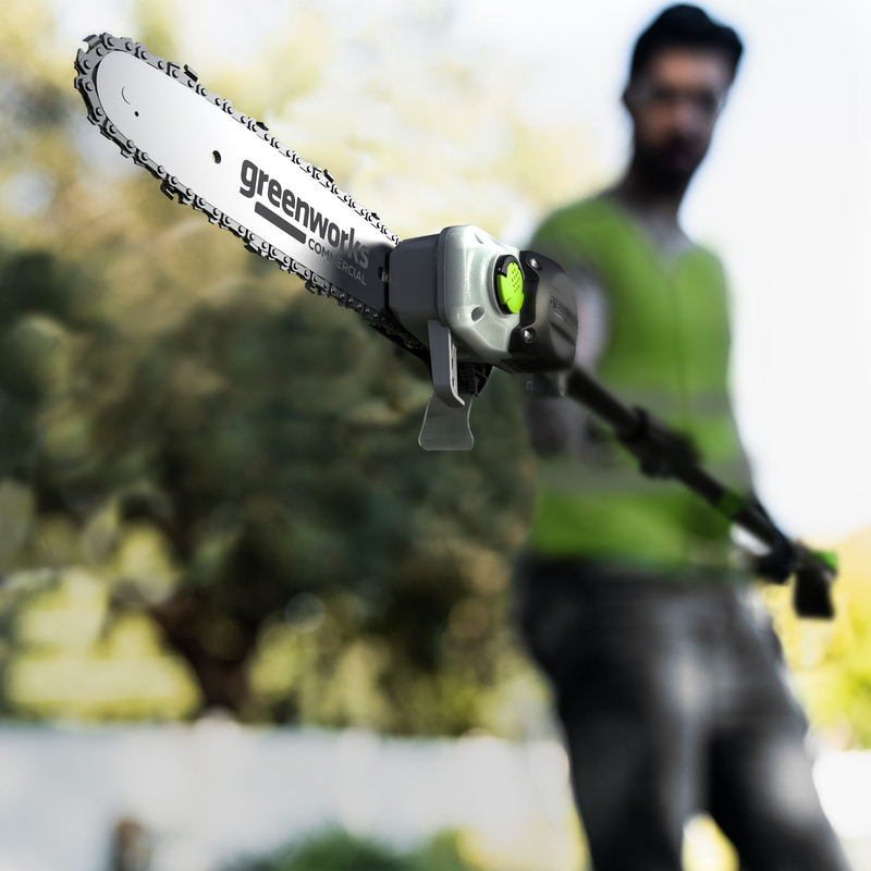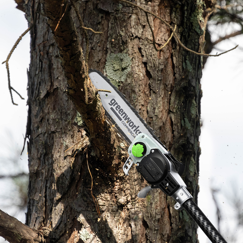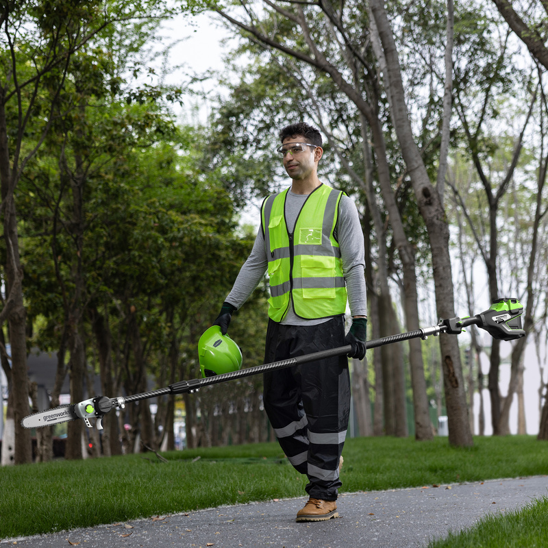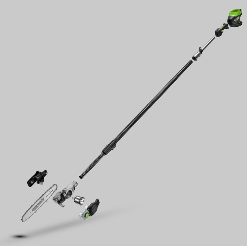 Высоторез аккумуляторный телескопический Greenworks PS102T — высоторез из серии Greenworks 82В для подрезки ветвей и сучьев на высоте до 5 метров.