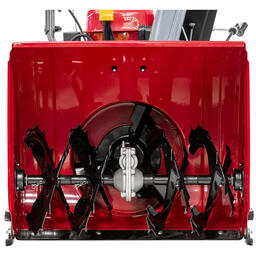 Двухкаскадная система выброса и шнеки-ледорубы диаметром 30 см справятся даже со слежавшимся и обледеневшим снегом. Ширина захвата шнека составляет 61 см, высота - 53 см, что позволяет быстро очищать большие площади. Дальность и направление выброса снега регулируются специальными поворотными рукоятками на желобе. Дальность отбрасывания регулируется в пределах 10 - 15 м. Опорные лапы регулируют высоту ковша до земли, защищая конструкцию от механических повреждений.
