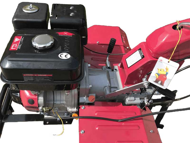 6-ти ступенчатая коробка передач включает 4 скорости вперед и 2 назад, Мотоблок с пониженной передачей обеспечивает высокий крутящий момент, что облегчает работу на тяжелых почвах.