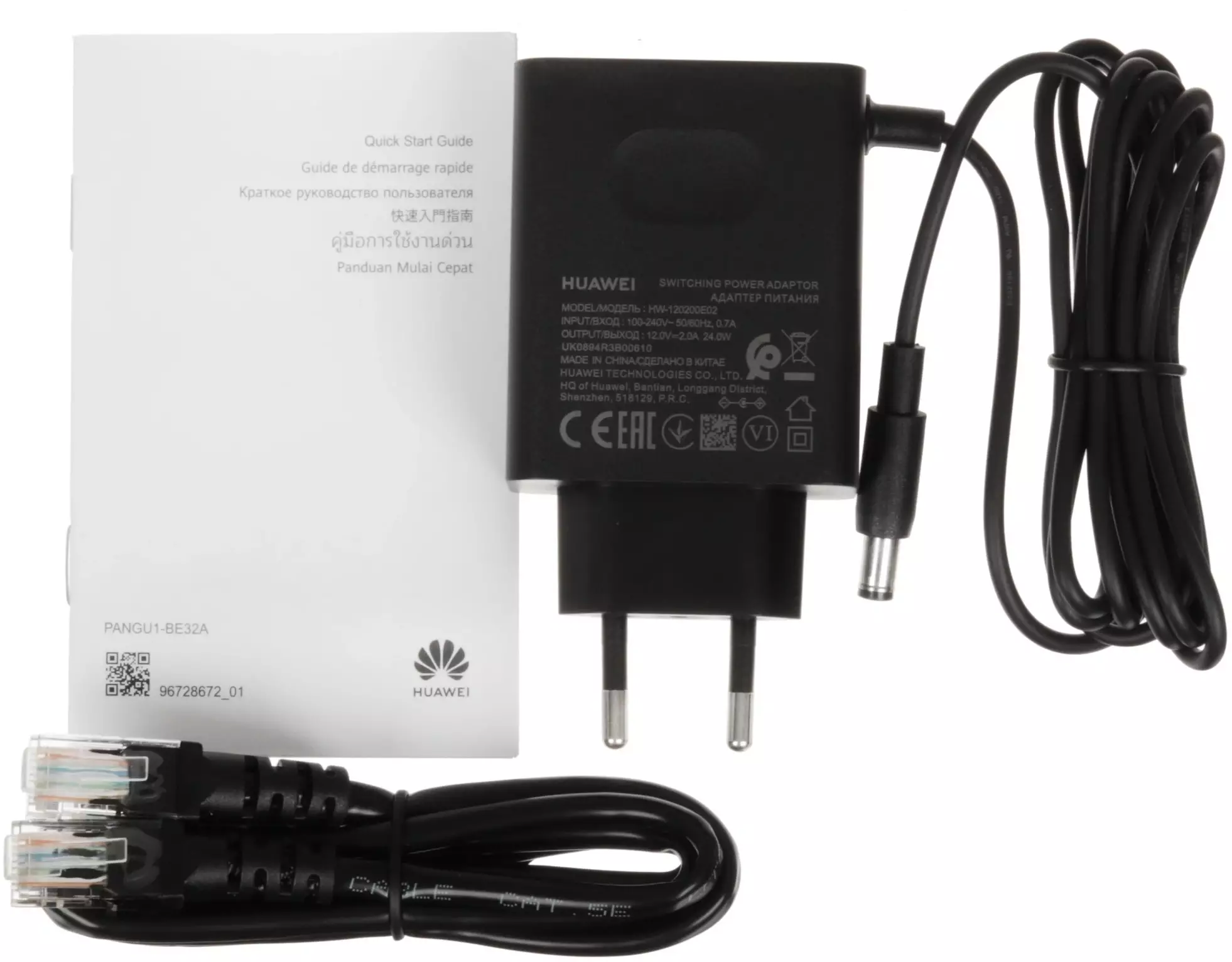 • Комплектация Бесшовный Mesh роутер Huawei Mesh X1 Pro, адаптер питания, документация, кабель Ethernet.