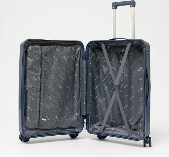 Чемодан-спиннер от торговой марки Valigetti из ударопрочного термостойкого полипропилена. Модель на четырех пластиковых колесах, с выдвижной ручкой и ручкой-переноской сверху, ножками для защиты от износа с крючками для подвешивания. Имеется утопленный кодовый замок. Отделение на молнии с двумя встречными бегунками. Внутри: фирменная подкладка. В одном отделении - разделитель на молнии и карман-сетка на молнии, в другом - перекрестные ремни для фиксации багажа.Чемодан-спиннер от торговой марки Valigetti из ударопрочного термостойкого полипропилена. Модель на четырех пластиковых колесах, с выдвижной ручкой и ручкой-переноской сверху, ножками для защиты от износа с крючками для подвешивания. Имеется утопленный кодовый замок. Отделение на молнии с двумя встречными бегунками. Внутри: фирменная подкладка. В одном отделении - разделитель на молнии и карман-сетка на молнии, в другом - перекрестные ремни для фиксации багажа.
