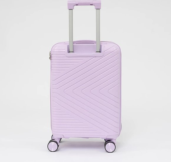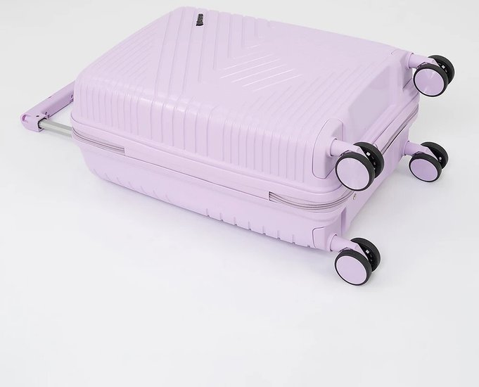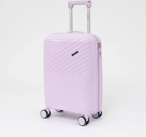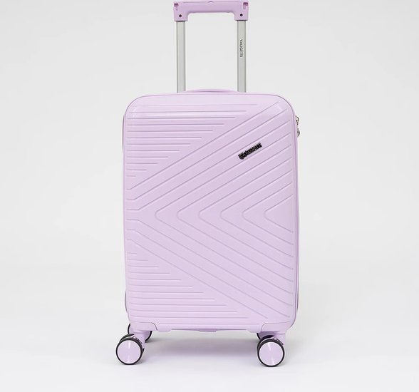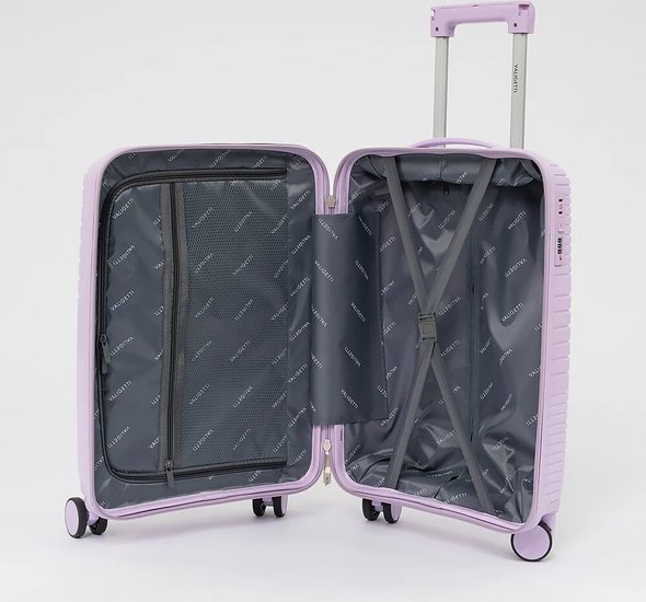 Чемодан-спиннер от торговой марки Valigetti из ударопрочного полипропилена с рельефной антивандальной поверхностью в сиреневом цвете. Модель на четырех сдвоенных колесах, с выдвижной ручкой с кнопкой и железными трубками, ручкой-переноской сверху. Закрывается молнией №8 антивор, имеется кодовый замок, утопленный в корпус. Внутри: фирменная подкладка, в одной части - клапан-разделитель на молнии, карман-сетка на молнии, в другой части - перекрестные ремни для фиксации багажа. На выдвижной ручке предусмотрена подставка для телефона и крючок для подвешивания.Чемодан-спиннер от торговой марки Valigetti из ударопрочного полипропилена с рельефной антивандальной поверхностью в сиреневом цвете. Модель на четырех сдвоенных колесах, с выдвижной ручкой с кнопкой и железными трубками, ручкой-переноской сверху. Закрывается молнией №8 антивор, имеется кодовый замок, утопленный в корпус. Внутри: фирменная подкладка, в одной части - клапан-разделитель на молнии, карман-сетка на молнии, в другой части - перекрестные ремни для фиксации багажа. На выдвижной ручке предусмотрена подставка для телефона и крючок для подвешивания.