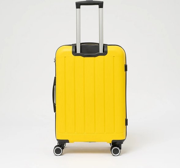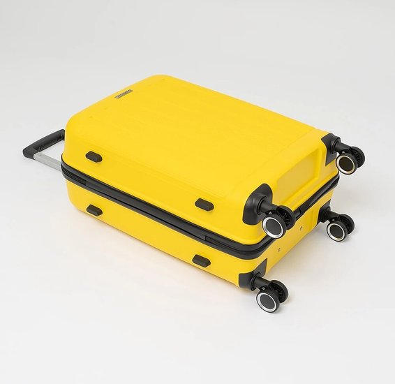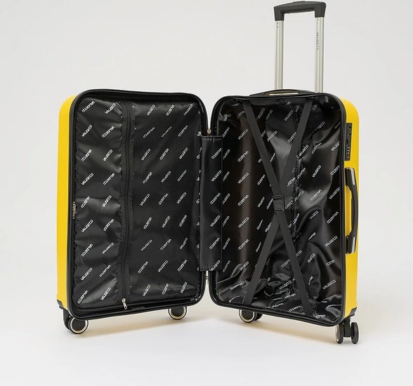 Чемодан-спиннер из ударопрочного термостойкого полипропилена. Модель на четырех пластиковых колесах, с выдвижной ручкой и ручкой-переноской сверху и сбоку. Имеется кодовый замок. Отделение на молнии с двумя встречными бегунками. Внутри: фирменная подкладка. В одном отделении - разделитель на молнии и карман-сетка на молнии, в другом - перекрестные ремни для фиксации багажа.Чемодан-спиннер из ударопрочного термостойкого полипропилена. Модель на четырех пластиковых колесах, с выдвижной ручкой и ручкой-переноской сверху и сбоку. Имеется кодовый замок. Отделение на молнии с двумя встречными бегунками. Внутри: фирменная подкладка. В одном отделении - разделитель на молнии и карман-сетка на молнии, в другом - перекрестные ремни для фиксации багажа.
