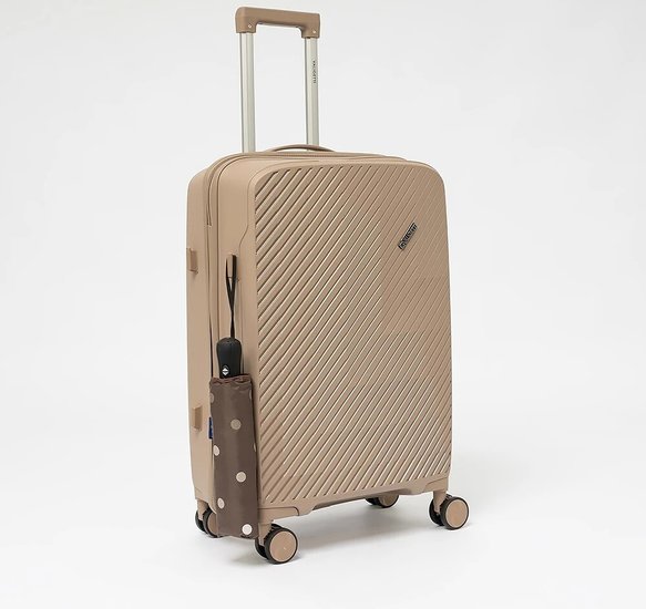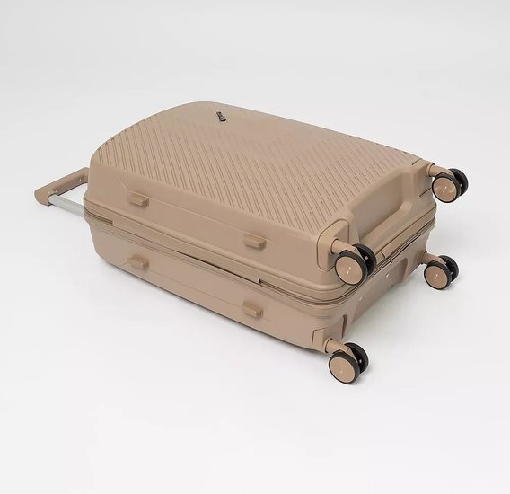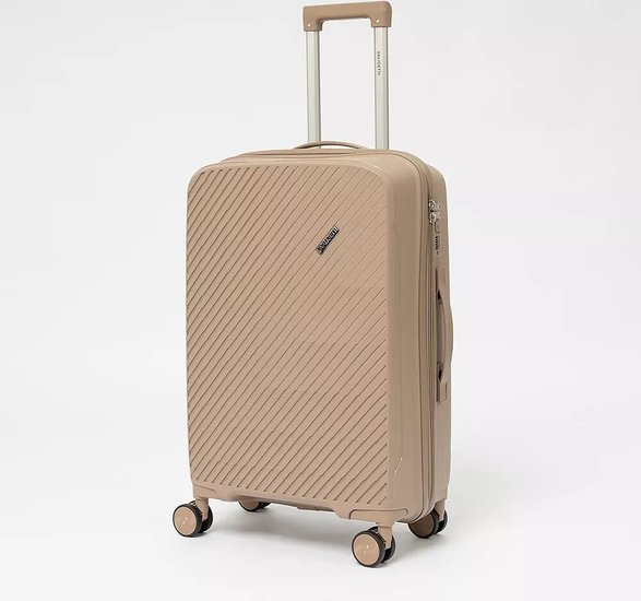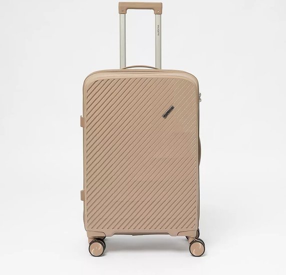 Чемодан-спиннер от торговой марки Valigetti из полипропилена кофейного цвета с узорной рельефной поверхностью. Модель на четырех сдвоенных пластиковых колесах, с выдвижной ручкой, ручкой-переноской сверху и сбоку. Закрывается молнией, имеется кодовый замок, утопленный в корпус. Внутри: фирменная подкладка, в одной части - клапан-разделитель на молнии, карман-сетка, в другой части - перекрестные фиксирующие ремни для багажа. На боковых ножках предусмотрены крючки для подвешивания пакетов.Чемодан-спиннер от торговой марки Valigetti из полипропилена кофейного цвета с узорной рельефной поверхностью. Модель на четырех сдвоенных пластиковых колесах, с выдвижной ручкой, ручкой-переноской сверху и сбоку. Закрывается молнией, имеется кодовый замок, утопленный в корпус. Внутри: фирменная подкладка, в одной части - клапан-разделитель на молнии, карман-сетка, в другой части - перекрестные фиксирующие ремни для багажа. На боковых ножках предусмотрены крючки для подвешивания пакетов.