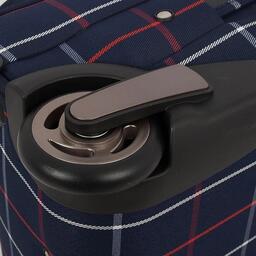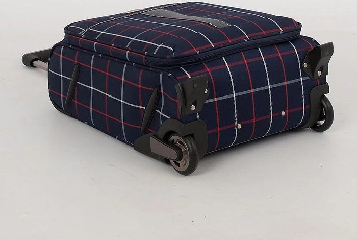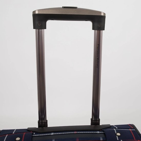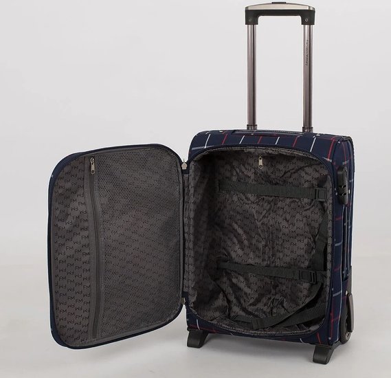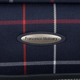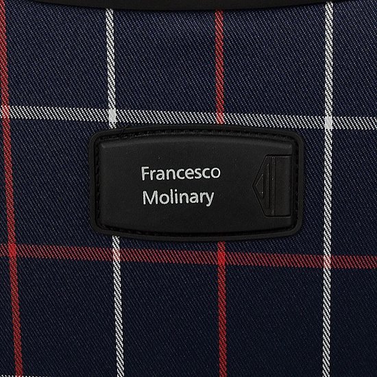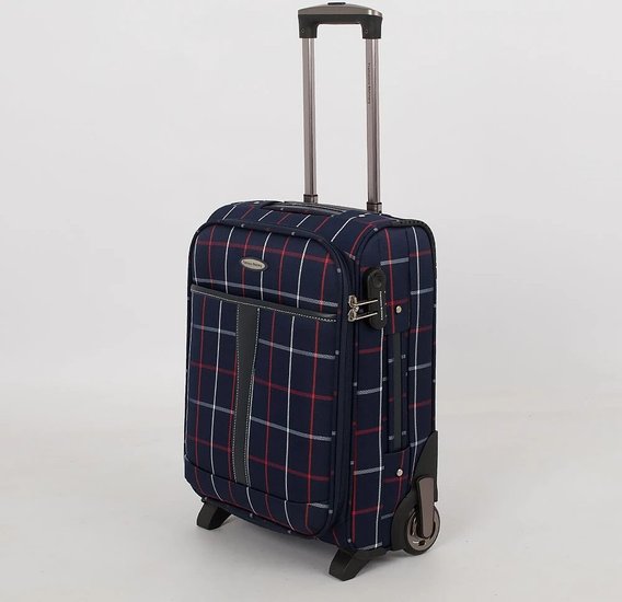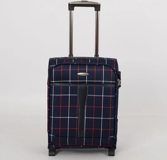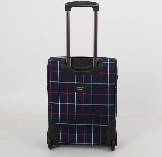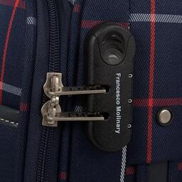 Стильный чемодан от бренда Francesco Molinary выполнен из плотного текстильного материала синего цвета в клетку с вставками из искусственной кожи. Чемодан на двух колесах, которые для надёжности утоплены в корпус, двумя переносными ручками сверху и сбоку, выдвижной ручкой и с пластиковыми ножками на дне и сбоку. Вместительное отделение на молнии с кодовым замком; внутри: сетчатый карман на молнии и фиксирующие ремни для багажа. Снаружи накладной карман на молнии. На задней стороне – багажная бирка. Модель подходит под ручную кладь для большинства авиакомпаний.Стильный чемодан от бренда Francesco Molinary выполнен из плотного текстильного материала синего цвета в клетку с вставками из искусственной кожи. Чемодан на двух колесах, которые для надёжности утоплены в корпус, двумя переносными ручками сверху и сбоку, выдвижной ручкой и с пластиковыми ножками на дне и сбоку. Вместительное отделение на молнии с кодовым замком; внутри: сетчатый карман на молнии и фиксирующие ремни для багажа. Снаружи накладной карман на молнии. На задней стороне – багажная бирка. Модель подходит под ручную кладь для большинства авиакомпаний.