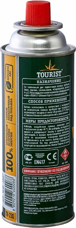 - Тип топлива газ (пропан 5%, изобутан 55%, бутан 40%)