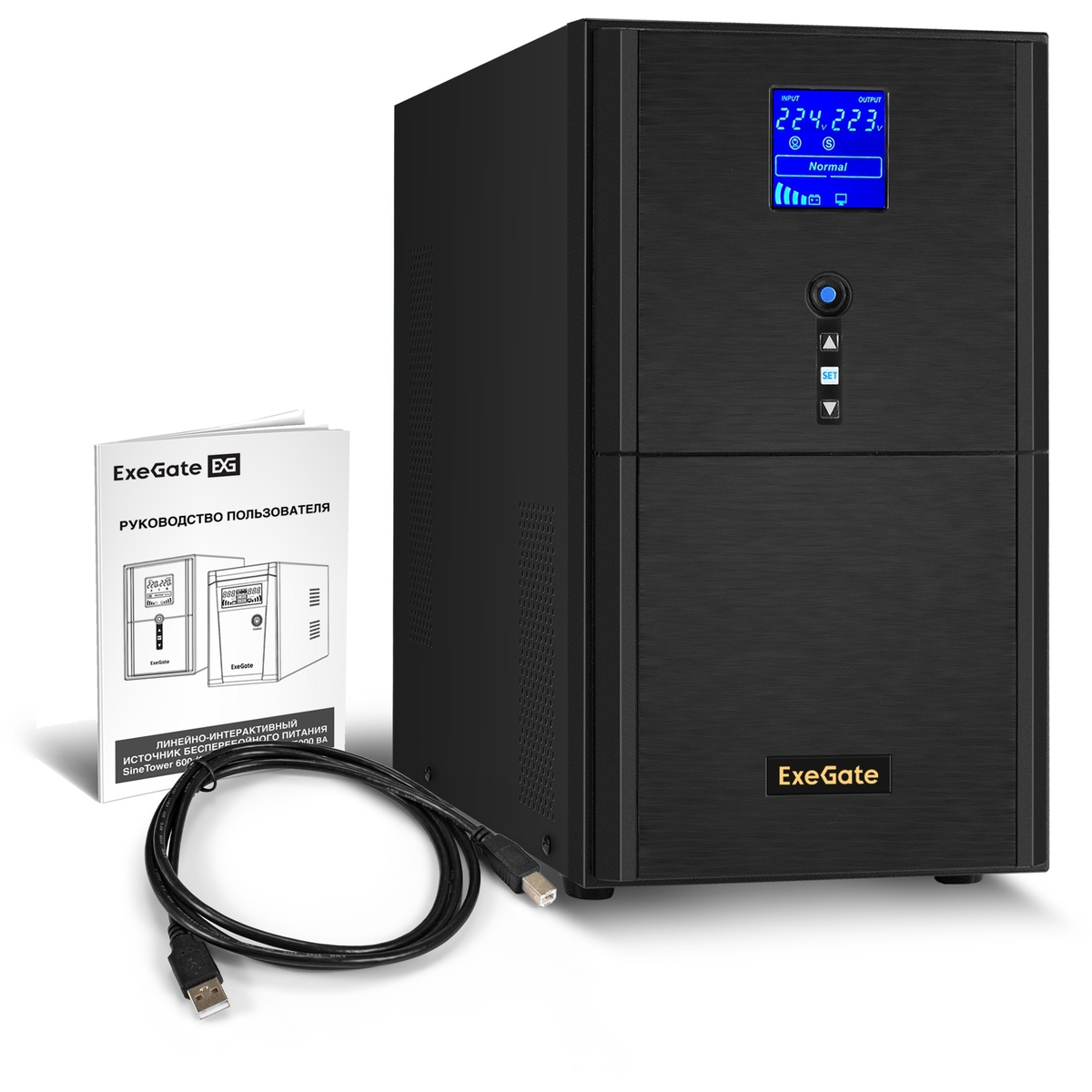 ИБП (инвертор, синус, для котла) ExeGate SineTower SN-3000.LCD.AVR.3SH.1C13.RJ.USB