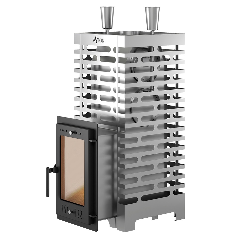 Печь ASTON из нержавеющий стали марки AISI 430 толщиной 4мм устойчива к окислению и прогару. Сваренные роботом швы обеспечивают отличное качество и долговечность печи. Две полноценные закрытые каменки. Чугунная дверь с системой «чистое стекло». Объём парно до 26м3. Тоннель печи от 140/190 мм.