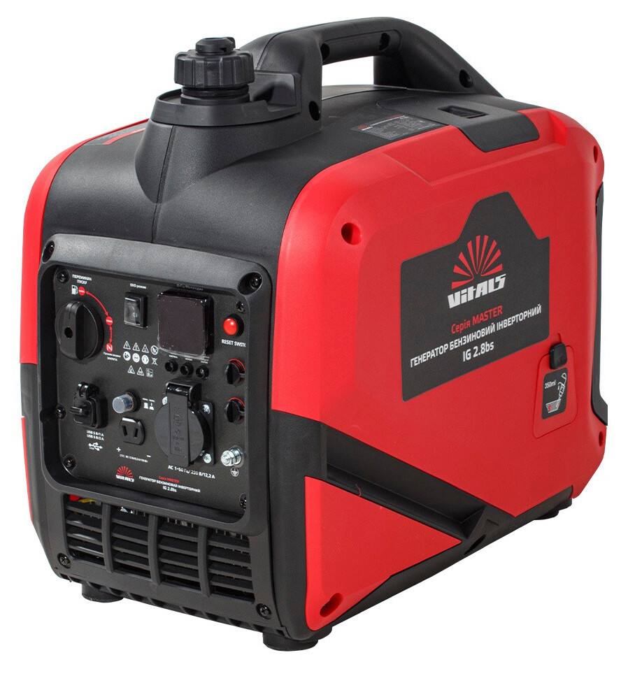 Vitals Master IG 2.8bs - инверторный генератор, создающий однофазный ток 220В с частотой 50 Гц и стабильной синусоидой. Установка используется в качестве резервного решения для бытовой техники, электроинструмента и освещения, а также подходит для выездных работ, отдыха за городом и временного электроснабжения в местах без сети.