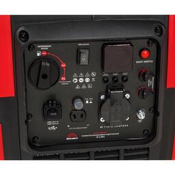цифровой модуль отображает показатели частоты, напряжения и число моточасов, помогая контролировать работу агрегата;