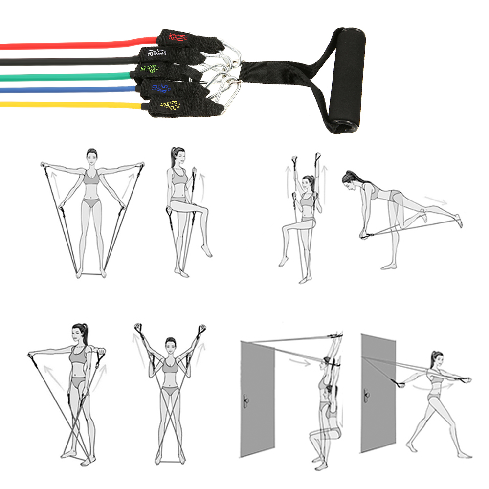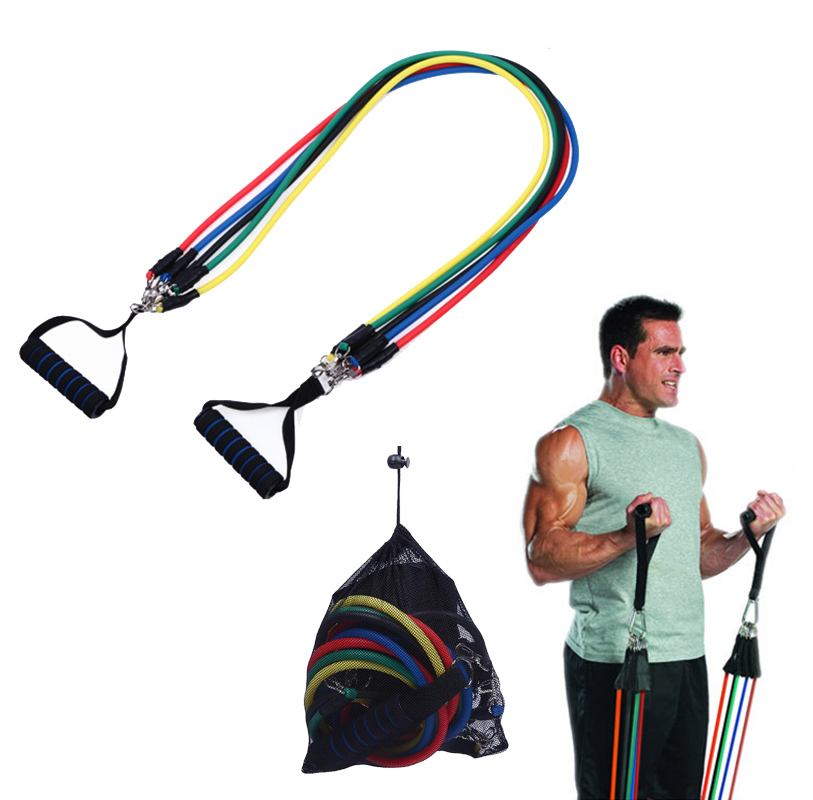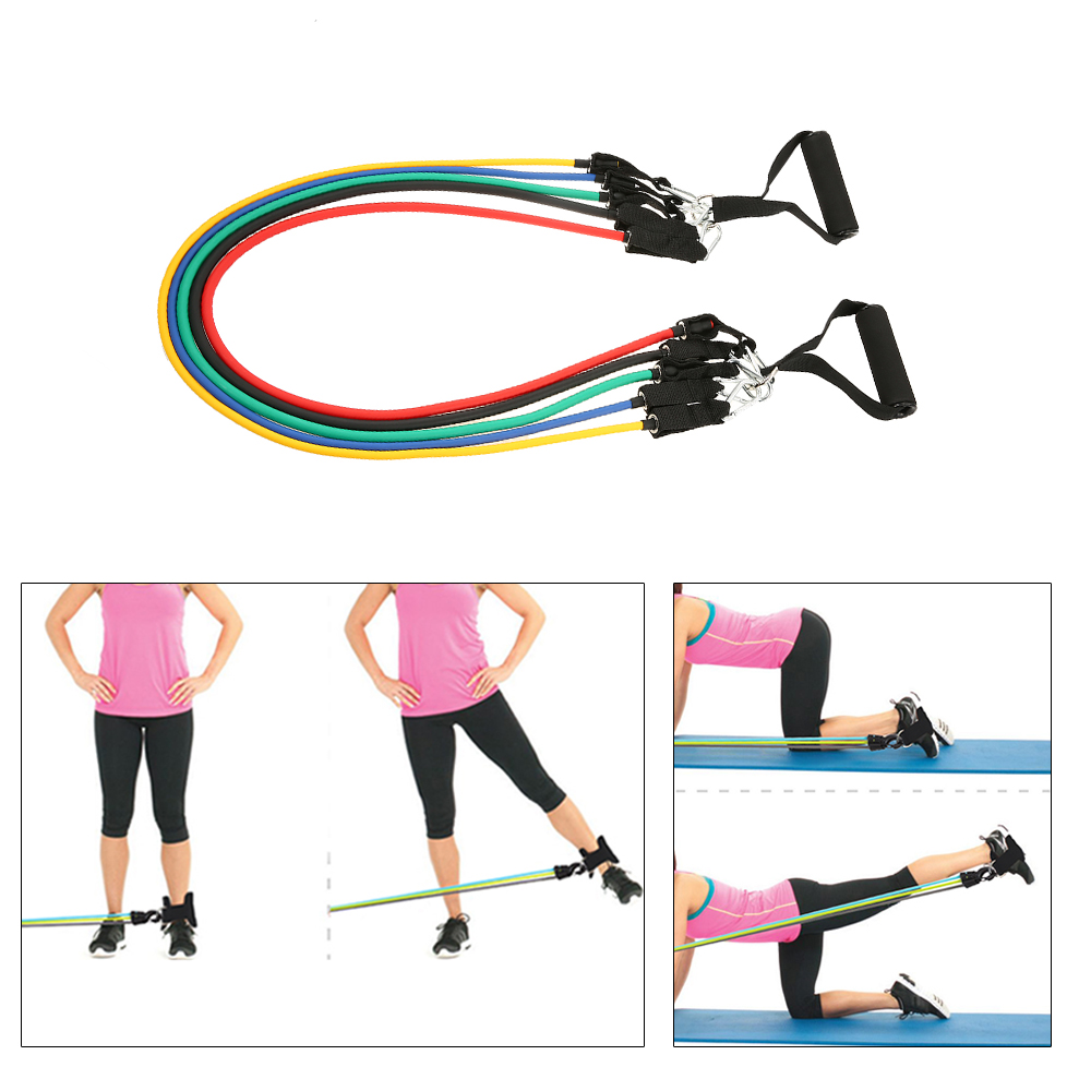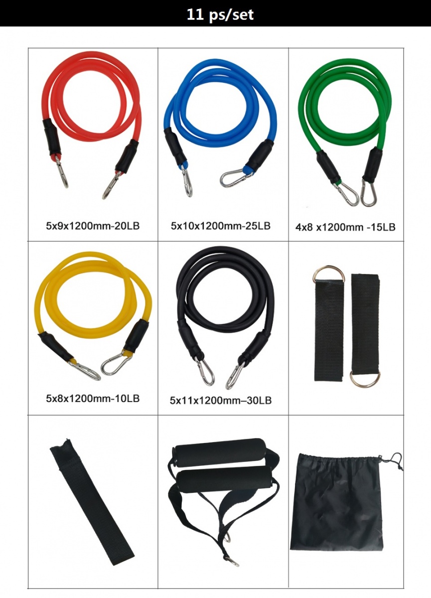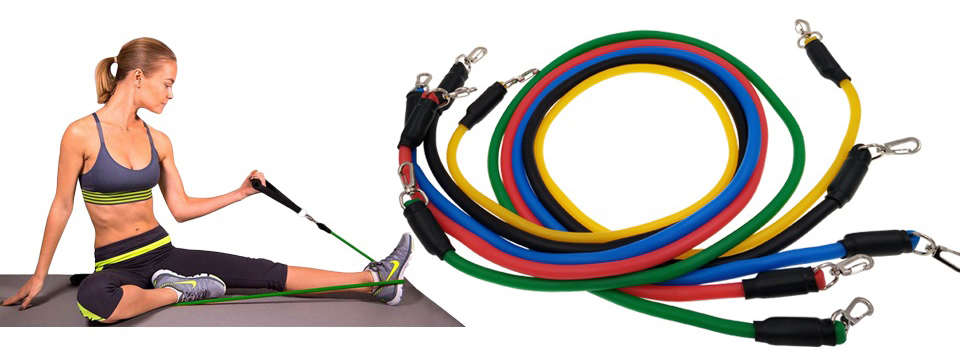 В комплект входят пять латексных цветных трубок, каждая из которых предназначена для определенной нагрузки. Их можно использовать как по отдельности, так и по нескольку сразу, тем самым увеличивая нагрузку.