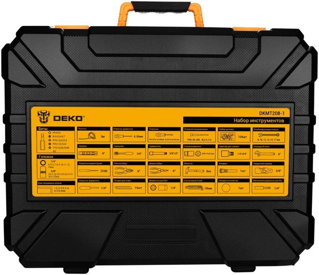Набор инструментов для дома DEKO DKMT208-1 предназначен для обслуживания автомобилей, а также подойдет для проведения ремонта бытовых конструкций, садовой техники дома и на даче.Все инструменты набора выполнены из стали, что обеспечивает их долгий срок службы.Набор инструментов для дома DEKO DKMT208-1 предназначен для обслуживания автомобилей, а также подойдет для проведения ремонта бытовых конструкций, садовой техники дома и на даче.Все инструменты набора выполнены из стали, что обеспечивает их долгий срок службы.
