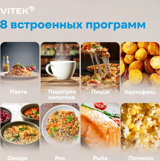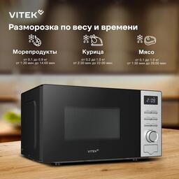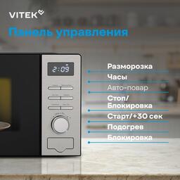 ✅Ключевые характеристикиМикроволновая печь с объемом 20 л и мощностью микроволн 700 Вт оптимально подходит для разогрева, разморозки и базового приготовления блюд дома или на даче. Электронное управление, поворотный стол диаметром 255 мм и таймер до 60 минут делают эксплуатацию простой и удобной для ежедневного использования.✅Преимущества и отличияПять уровней мощности позволяют подобрать оптимальный режим для каждого продукта, а автоматические программы включают варианты для приготовления картофеля, пасты, пиццы, попкорна, овощей, напитков, мяса и рыбы. Отдельная кнопка +30 секунд облегчает корректировку времени, а функция блокировки от детей повышает безопасность на семейной кухне.✅ПрактичностьLED дисплей с отображением времени и часов обеспечивает наглядный контроль за процессом, а внутреннее освещение позволяет следить за приготовлением через стеклянную дверцу. Программирование процесса и память рецептов подходят для часто используемых сценариев, а автоматическая разморозка доступна по времени и весу.✅УникальностьКомпактные размеры и лаконичный дизайн с черным корпусом и серебристыми акцентами гармонично впишутся в современную кухню. Внутренние поверхности легко очищаются после приготовления, а гарантия 2 года подтверждает надежность устройства.✅Ключевые характеристикиМикроволновая печь с объемом 20 л и мощностью микроволн 700 Вт оптимально подходит для разогрева, разморозки и базового приготовления блюд дома или на даче. Электронное управление, поворотный стол диаметром 255 мм и таймер до 60 минут делают эксплуатацию простой и удобной для ежедневного использования.✅Преимущества и отличияПять уровней мощности позволяют подобрать оптимальный режим для каждого продукта, а автоматические программы включают варианты для приготовления картофеля, пасты, пиццы, попкорна, овощей, напитков, мяса и рыбы. Отдельная кнопка +30 секунд облегчает корректировку времени, а функция блокировки от детей повышает безопасность на семейной кухне.✅ПрактичностьLED дисплей с отображением времени и часов обеспечивает наглядный контроль за процессом, а внутреннее освещение позволяет следить за приготовлением через стеклянную дверцу. Программирование процесса и память рецептов подходят для часто используемых сценариев, а автоматическая разморозка доступна по времени и весу.✅УникальностьКомпактные размеры и лаконичный дизайн с черным корпусом и серебристыми акцентами гармонично впишутся в современную кухню. Внутренние поверхности легко очищаются после приготовления, а гарантия 2 года подтверждает надежность устройства.