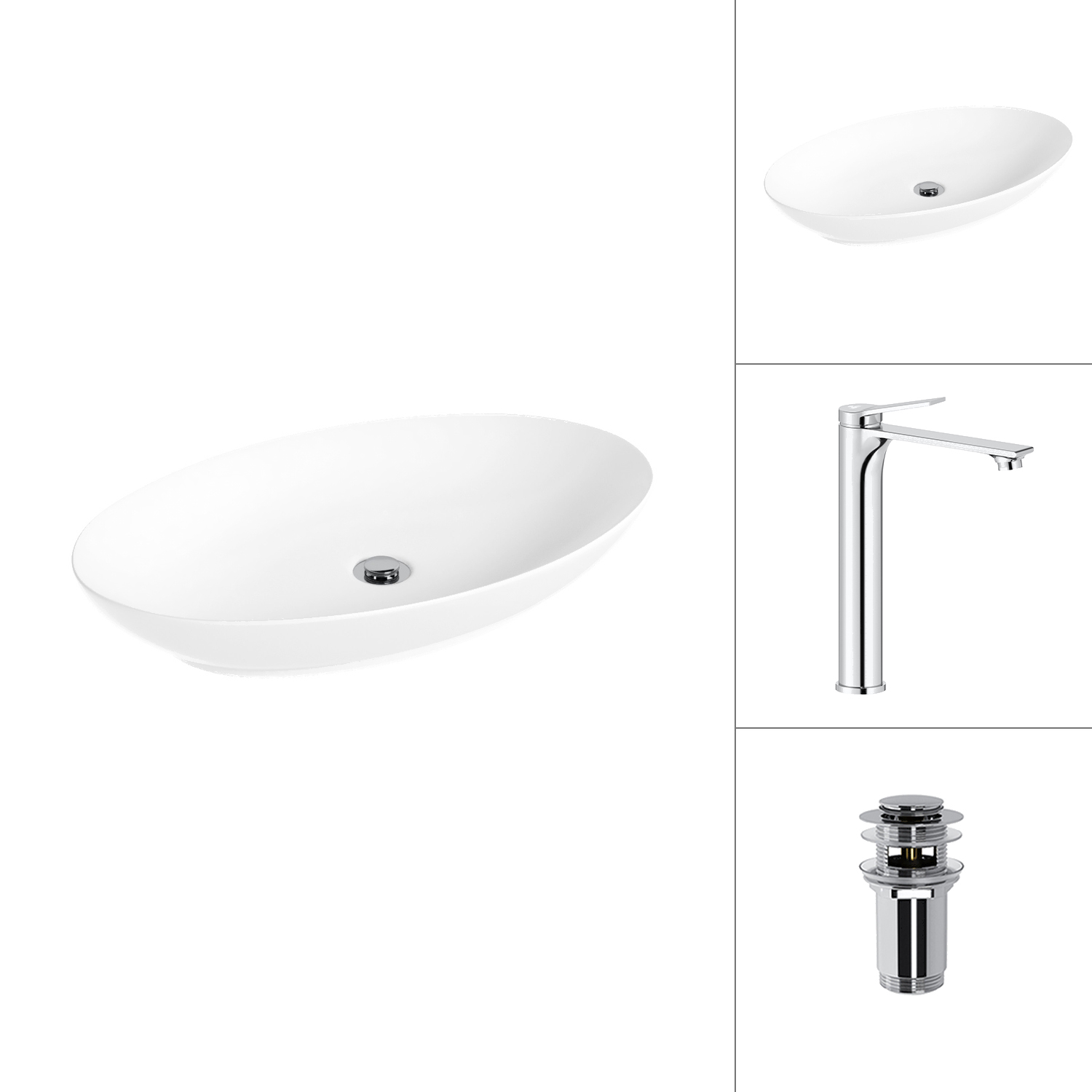 Умывальник со смесителем Lauter 21571 + Rio 21AM12672 с донным клапаном 21190CH (хром)