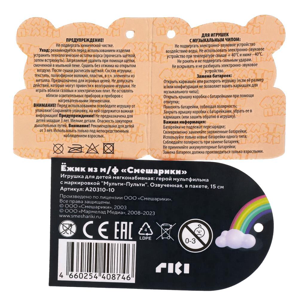 Мягкая игрушка Мульти-пульти Смешарики Ежик / A20310-10