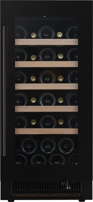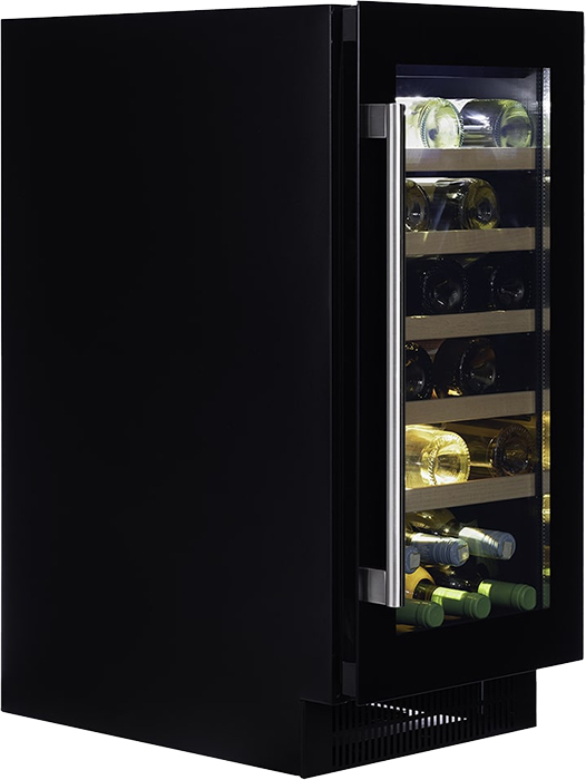Специальное покрытие защищает вино от влияния ультрафиолетовых лучей, которые проникают, если шкаф находится в солнечной комнате. Хранение становится еще безопаснее и герметичнее благодаря нескольким слоям стекол. Цвет корпуса — черный. Дверь можно перевесить на другую сторону, поэтому вариантов размещения его в доме становится больше.