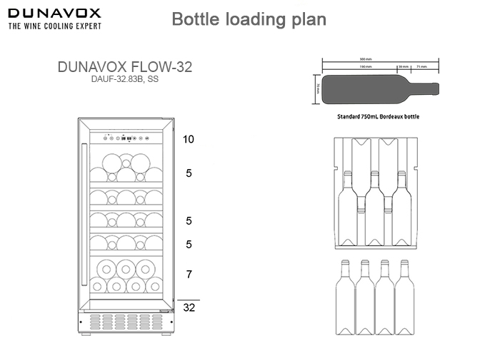 Винный холодильник Dunavox DAUF-32.83MB имеет две температурные зоны, в которых одновременно можно хранить разные сорта алкоголя и выставлять разные сочетания настроек. Он встраивается в нишу, что удобно, если у вас ограничен метраж помещения. Благодаря компактным размерам данная модель — отличный выбор для офиса, гостиничного номера. Количество бутылок, которое можно разместить с учетом полной комплектации и из расчета объема бутылки 0,75 л, — 32 шт.