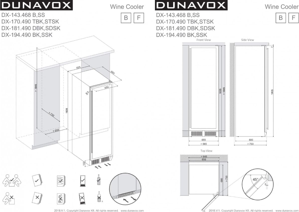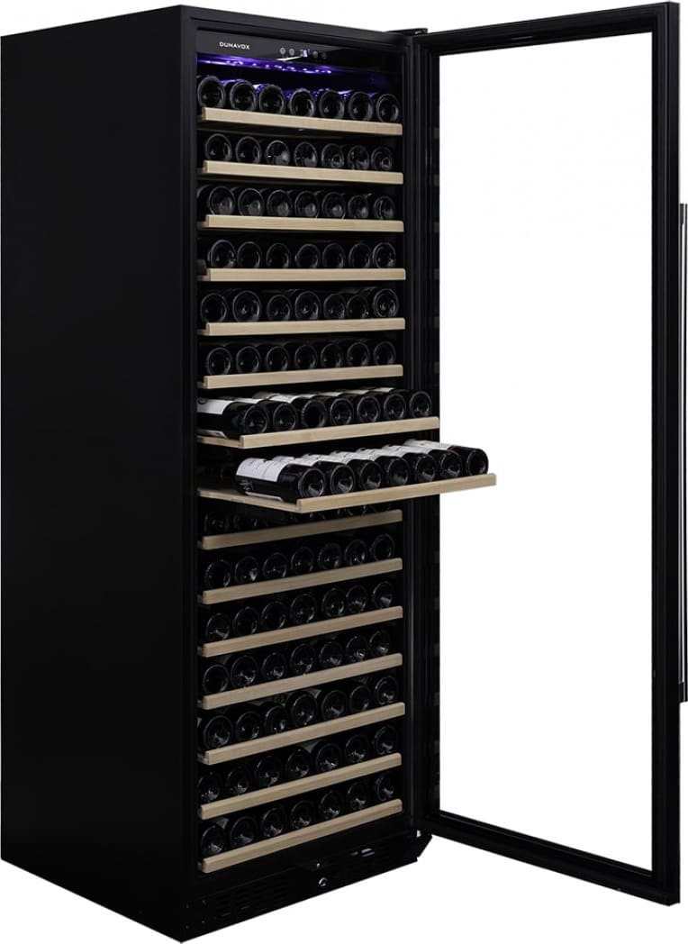 Винный холодильник Dunavox DX-194.490MBK имеет одну температурную зону, в которой можно разместить бутылки и единовременно выставить только одну комбинацию настроек. Он устанавливается отдельно, что удобно, если у вас есть специальное помещение — кладовая, погреб и т.д. Количество бутылок, которое можно разместить с учетом полной комплектации и из расчета объема бутылки 0,75 л, — 194 шт.
