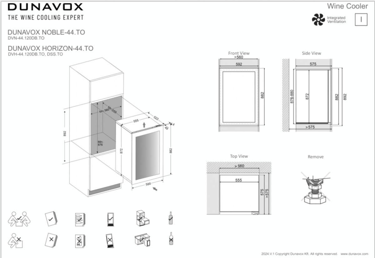 Винный холодильник Dunavox DVH-44.120DMB.TO имеет две температурные зоны, в которых одновременно можно хранить разные сорта алкоголя и выставлять разные сочетания настроек. Он встраивается в нишу, что удобно, если у вас ограничен метраж помещения. Благодаря компактным размерам данная модель — отличный выбор для офиса, гостиничного номера. Количество бутылок, которое можно разместить с учетом полной комплектации и из расчета объема бутылки 0,75 л, — 44 шт.