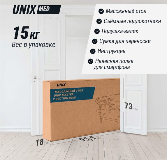 • Комплектация массажный стол, подлокотники - 2 шт., полка для гаджетов - 1 шт., подголовник - 1 шт., полотенце - 1 шт., сумка для переноски, инструкция