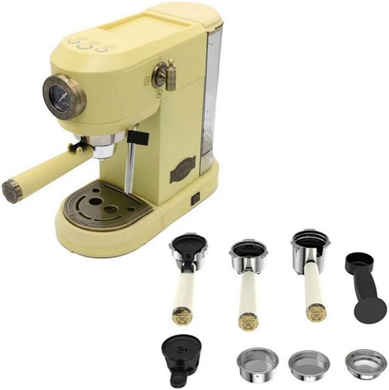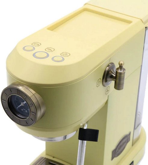 ✅Ключевые характеристикиЭта кофеварка отлично подходит для домашнего использования, быстро готовит эспрессо, капучино и другие популярные напитки, поддерживает молотый кофе, капсулы и чалды, оснащается мощным 19-барным насосом и резервуаром для воды 1.1 литра.✅Преимущества и отличияСистема быстрой термоблочной подачи пара позволяет экономить время на приготовлении, а долговечные металлические фильтры обеспечивают стабильное качество напитка; капучинатор легко взбивает молоко для горячей и холодной пены.✅ПрактичностьУдобная панель управления, съемный поддон для капель и возможность использования больших чашек делают ежедневное обслуживание простым, а встроенный подогрев чашек позволяет сохранить оптимальную температуру напитка.✅УникальностьМеталлический корпус с винтажным стилем и компактные размеры выделяют устройство среди аналогов, а совместимость с разными типами кофе делает его универсальным решением для дома или офиса✅Ключевые характеристикиЭта кофеварка отлично подходит для домашнего использования, быстро готовит эспрессо, капучино и другие популярные напитки, поддерживает молотый кофе, капсулы и чалды, оснащается мощным 19-барным насосом и резервуаром для воды 1.1 литра.✅Преимущества и отличияСистема быстрой термоблочной подачи пара позволяет экономить время на приготовлении, а долговечные металлические фильтры обеспечивают стабильное качество напитка; капучинатор легко взбивает молоко для горячей и холодной пены.✅ПрактичностьУдобная панель управления, съемный поддон для капель и возможность использования больших чашек делают ежедневное обслуживание простым, а встроенный подогрев чашек позволяет сохранить оптимальную температуру напитка.✅УникальностьМеталлический корпус с винтажным стилем и компактные размеры выделяют устройство среди аналогов, а совместимость с разными типами кофе делает его универсальным решением для дома или офиса