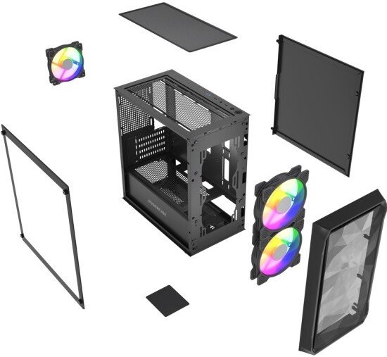 ✅Ключевые характеристикиКомпьютерный корпус формата Mini Tower поддерживает платы micro-ATX и mini-ITX, оснащается тремя предустановленными вентиляторами с адресной RGB-подсветкой, а также закалённым стеклом на боковой панели. Поддерживается установка жидкостного охлаждения с радиаторами до 240 мм, а блок питания размещается снизу.✅Преимущества и отличияМодель выделяется наличием трёх вентиляторов с ARGB-подсветкой в комплекте, что обеспечивает эффективное охлаждение и эстетичный внешний вид. Закалённое стекло позволяет продемонстрировать внутренние компоненты и подсветку системы.✅ПрактичностьКорпус оснащён стандартным набором интерфейсов:два USB 2.0, один USB 3.2 Gen1 и двумя аудиоразъёмами, что упрощает подключение периферии. Возможность установки жидкостного охлаждения расширяет спектр совместимых процессорных систем.✅УникальностьОсобенностью корпуса является сочетание современной адресной подсветки вентиляторов и боковой панели из закалённого стекла, что придаёт устройству стильный внешний вид и выделяет его среди типичных решений данного класса.✅Ключевые характеристикиКомпьютерный корпус формата Mini Tower поддерживает платы micro-ATX и mini-ITX, оснащается тремя предустановленными вентиляторами с адресной RGB-подсветкой, а также закалённым стеклом на боковой панели. Поддерживается установка жидкостного охлаждения с радиаторами до 240 мм, а блок питания размещается снизу.✅Преимущества и отличияМодель выделяется наличием трёх вентиляторов с ARGB-подсветкой в комплекте, что обеспечивает эффективное охлаждение и эстетичный внешний вид. Закалённое стекло позволяет продемонстрировать внутренние компоненты и подсветку системы.✅ПрактичностьКорпус оснащён стандартным набором интерфейсов:два USB 2.0, один USB 3.2 Gen1 и двумя аудиоразъёмами, что упрощает подключение периферии. Возможность установки жидкостного охлаждения расширяет спектр совместимых процессорных систем.✅УникальностьОсобенностью корпуса является сочетание современной адресной подсветки вентиляторов и боковой панели из закалённого стекла, что придаёт устройству стильный внешний вид и выделяет его среди типичных решений данного класса.