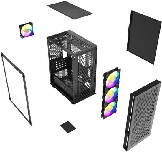 ✅Ключевые характеристикиКомпьютерный корпус формата Mini Tower поддерживает материнские платы micro-ATX и mini-ITX, оснащён четырьмя предустановленными 120 мм вентиляторами с многоцветной адресной подсветкой ARGB, а также прозрачной боковой панелью из закалённого стекла. Максимальная высота процессорного кулера составляет 165 мм, длина видеокарты - до 300 мм, а блока питания - до 170 мм.✅Преимущества и отличияМодель выделяется отличной вентиляцией благодаря сетчатой фронтальной панели и наличию сразу четырёх установленных вентиляторов. Она также совместима с жидкостными системами охлаждения с радиаторами до 280 мм и поддерживает установку современных видеокарт и процессорных кулеров среднего и большого размера.✅ПрактичностьДля удобства эксплуатации корпус снабжён разъёмами USB 3.0 и двумя USB 2.0 на фронтальной панели, а также двумя отдельными аудиоразъёмами. Возможна установка одного 2.5" и одного 3.5" накопителя, что подойдёт для большинства домашних и игровых конфигураций.✅УникальностьОсобенностью конструкции является совмещение современной адресной подсветки вентиляторов с хорошей продуваемостью и стильным внешним видом благодаря прозрачному окну из закалённого стекла. Корпус рассчитан на эффективное охлаждение и продуман для сборки производительных систем в компактном форм-факторе.✅Ключевые характеристикиКомпьютерный корпус формата Mini Tower поддерживает материнские платы micro-ATX и mini-ITX, оснащён четырьмя предустановленными 120 мм вентиляторами с многоцветной адресной подсветкой ARGB, а также прозрачной боковой панелью из закалённого стекла. Максимальная высота процессорного кулера составляет 165 мм, длина видеокарты - до 300 мм, а блока питания - до 170 мм.✅Преимущества и отличияМодель выделяется отличной вентиляцией благодаря сетчатой фронтальной панели и наличию сразу четырёх установленных вентиляторов. Она также совместима с жидкостными системами охлаждения с радиаторами до 280 мм и поддерживает установку современных видеокарт и процессорных кулеров среднего и большого размера.✅ПрактичностьДля удобства эксплуатации корпус снабжён разъёмами USB 3.0 и двумя USB 2.0 на фронтальной панели, а также двумя отдельными аудиоразъёмами. Возможна установка одного 2.5" и одного 3.5" накопителя, что подойдёт для большинства домашних и игровых конфигураций.✅УникальностьОсобенностью конструкции является совмещение современной адресной подсветки вентиляторов с хорошей продуваемостью и стильным внешним видом благодаря прозрачному окну из закалённого стекла. Корпус рассчитан на эффективное охлаждение и продуман для сборки производительных систем в компактном форм-факторе.