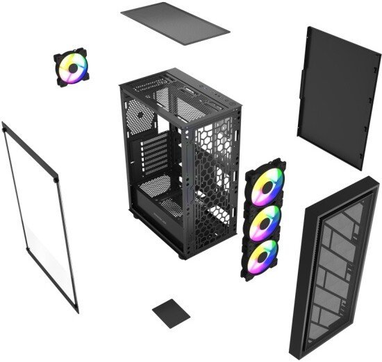 ✅Ключевые характеристикиКомпьютерный корпус Mid Tower поддерживает материнские платы формата ATX, micro-ATX и mini-ITX, обеспечивая универсальность для сборок разного уровня. В корпусе предусмотрено 6 посадочных мест под вентиляторы, из которых 4 вентиляторы на 120 мм уже установлены, а также реализована поддержка крупных видеокарт длиной до 300 мм и высоких процессорных кулеров до 165 мм.✅Преимущества и отличияМодель выделяется отличной продуваемостью благодаря сетчатой фронтальной панели, а также наличию бокового окна из закаленного стекла для эффектной демонстрации компонентов. Поддержка жидкостного охлаждения с радиаторами до 360 мм спереди и до 280 мм сверху позволяет собрать производительную систему с эффективным охлаждением.✅ПрактичностьДля хранения данных корпус оснащён двумя внутренними отсеками под 2.5-дюймовые накопители и одним для 3.5-дюймового диска, что оптимально для современных конфигураций. Внешние интерфейсы включают два USB 2.0 и один USB 3.0, а также раздельные аудиоразъемы, что облегчает подключение периферии и гарнитур.✅УникальностьВ комплекте идут четыре вентилятора с многоцветной неуправляемой подсветкой, что добавляет визуальной привлекательности без необходимости дополнительной настройки. Оптимальное сочетание компактности, поддержки мощных компонентов и стильного дизайна делает корпус отличным выбором для современных игровых и рабочих ПК.✅Ключевые характеристикиКомпьютерный корпус Mid Tower поддерживает материнские платы формата ATX, micro-ATX и mini-ITX, обеспечивая универсальность для сборок разного уровня. В корпусе предусмотрено 6 посадочных мест под вентиляторы, из которых 4 вентиляторы на 120 мм уже установлены, а также реализована поддержка крупных видеокарт длиной до 300 мм и высоких процессорных кулеров до 165 мм.✅Преимущества и отличияМодель выделяется отличной продуваемостью благодаря сетчатой фронтальной панели, а также наличию бокового окна из закаленного стекла для эффектной демонстрации компонентов. Поддержка жидкостного охлаждения с радиаторами до 360 мм спереди и до 280 мм сверху позволяет собрать производительную систему с эффективным охлаждением.✅ПрактичностьДля хранения данных корпус оснащён двумя внутренними отсеками под 2.5-дюймовые накопители и одним для 3.5-дюймового диска, что оптимально для современных конфигураций. Внешние интерфейсы включают два USB 2.0 и один USB 3.0, а также раздельные аудиоразъемы, что облегчает подключение периферии и гарнитур.✅УникальностьВ комплекте идут четыре вентилятора с многоцветной неуправляемой подсветкой, что добавляет визуальной привлекательности без необходимости дополнительной настройки. Оптимальное сочетание компактности, поддержки мощных компонентов и стильного дизайна делает корпус отличным выбором для современных игровых и рабочих ПК.
