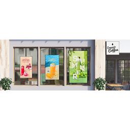 Благодаря компактным размерам и тонкому корпусу витринный дисплей XS4P органично вписывается в интерьер любого магазина. Его рамка тоньше, чем у обычных моделей, что позволяет устанавливать его ближе к окнам и улучшает видимость для покупателей. Кроме того, к задней части XS4P можно прикрепить стандартную вывеску UHD, что позволяет использовать его как двусторонний дисплей.