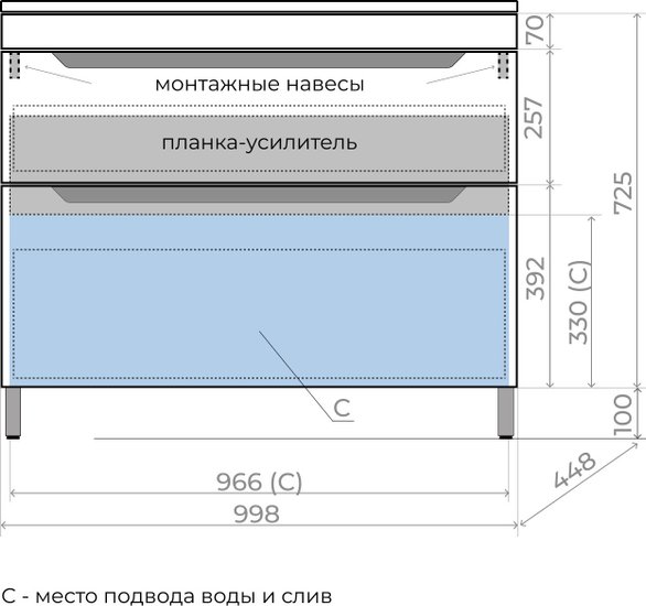 Тумба под умывальник Остин 100 Plus 2 ящика (графит)