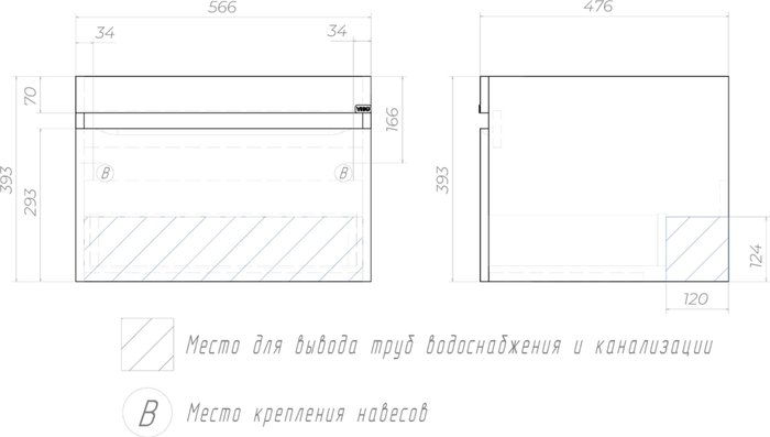 Тумба под умывальник Urban 600-0-1 Kamilla 1200 навесная