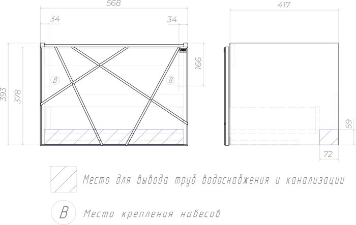 Тумба под умывальник Geometry 600-0-1 Como навесная (бетон)