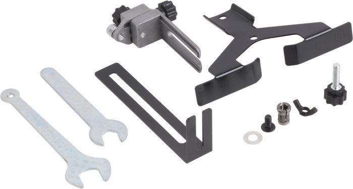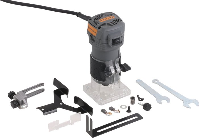 Комплектация- Гаечный ключ- Основание- Параллельная направляющая- Упор для работы с фрезами без подшипника- Комплект угольных щёток- Инструкция- Документация- Гарантийный талон
