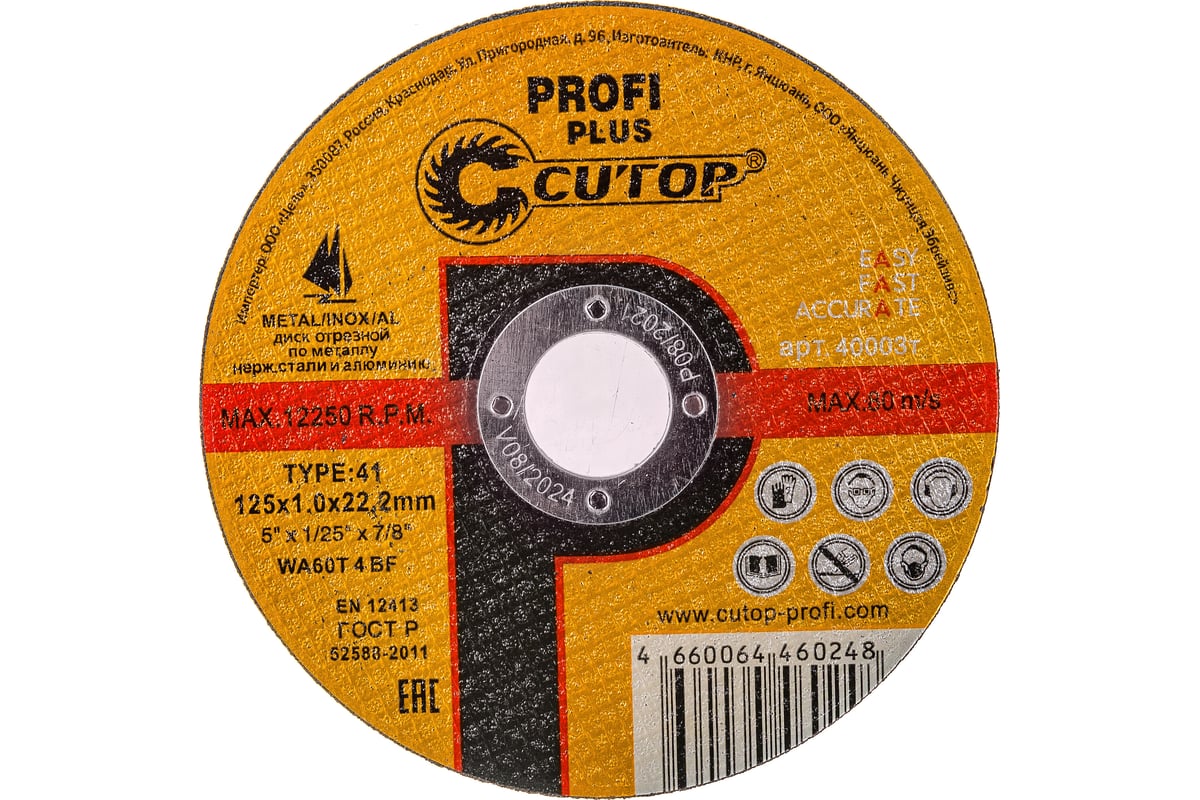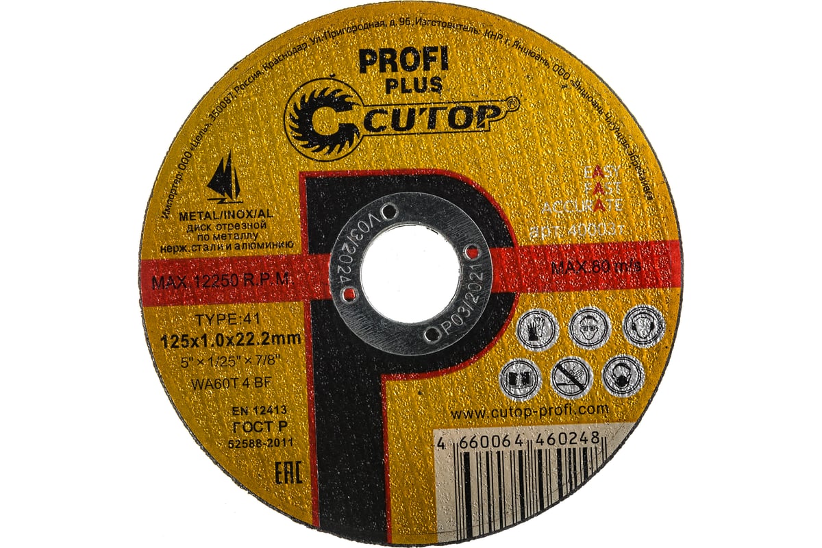 Диск отрезной по нержавеющей стали Profi Plus (125х1.0х22.2 мм) CUTOP 40003т