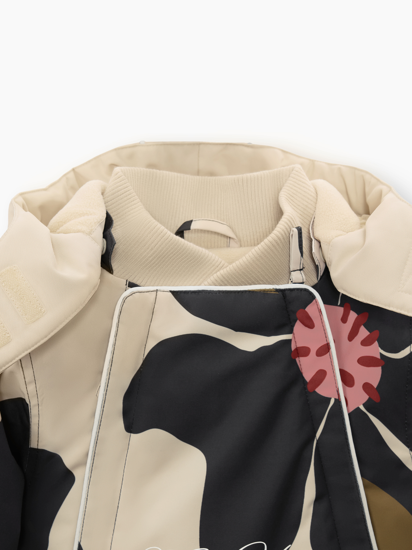 • Большой капюшон оснащен застежкой под подбородком, защищая голову и шею от холода