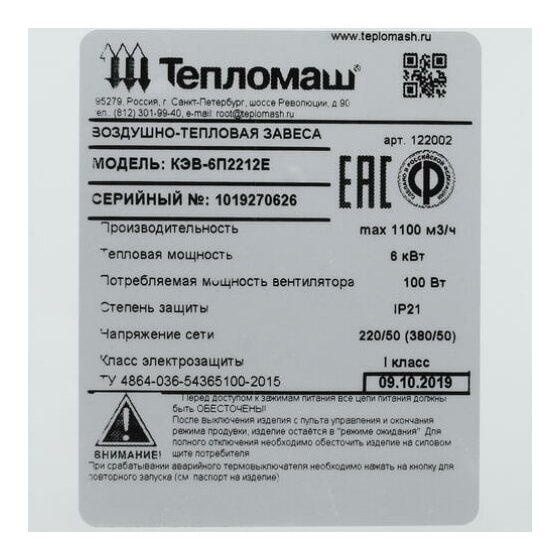 Тепловая завеса Тепломаш КЭВ-6П2212Е