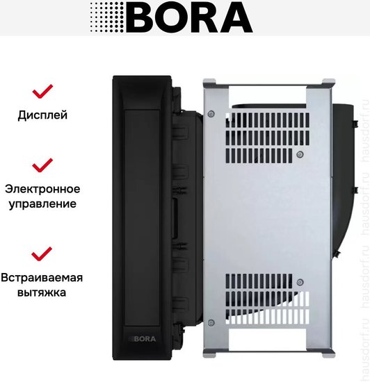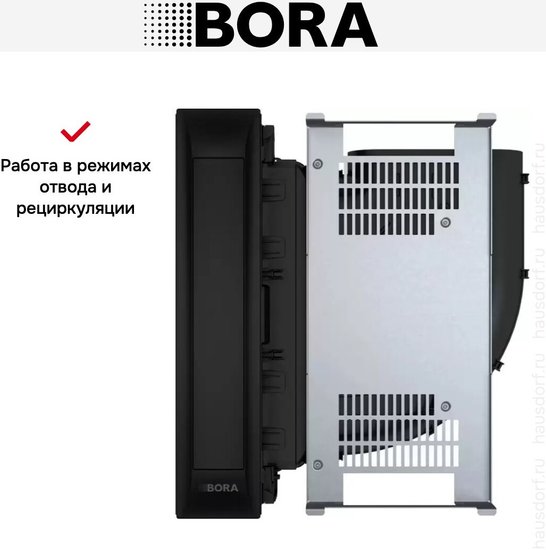 ✅Ключевые характеристикиВстраиваемая кухонная вытяжка профессионального класса, рассчитанная на установку в столешницу. Подходит для небольших и средних кухонь, обладает габаритами 17.6x48.2x54 см, работает в режимах отвода и циркуляции, оснащена электронным управлением и дисплеем. Количество скоростей - 9, максимальный уровень шума - 65 дБ, потребляемая мощность - 550 Вт. Корпус выполнен из нержавеющей стали, жироулавливающий фильтр можно мыть в посудомоечной машине.✅Преимущества и отличияМодель выделяется автоматическим открытием/закрытием крышки и возможностью интеграции с варочными панелями через систему Hob-hood connection. Высокий класс энергоэффективности A++ обеспечивает экономичное энергопотребление. Вытяжка поддерживает установку воздуховода с поворотом вправо или влево и подходит как для газовых, так и индукционных варочных панелей.✅ПрактичностьУстройство совместимо с системами BORA Ecotube и легко подключается к различным коммуникациям. Для удобства пользователя предусмотрен жироулавливающий фильтр из нержавеющей стали, пригодный для мытья в посудомоечной машине, а также интуитивно понятное электронное управление с поворотными переключателями и дисплеем. В комплекте есть поддон для сбора жидкости/жира и монтажный набор.✅УникальностьВытяжка оснащена демо-режимом, автоматическим выбором оптимального режима работы с помощью датчика, а также функцией автоматического открытия и закрытия крышки. Поддерживается точная регулировка скорости, что позволяет эффективно очищать воздух без лишнего шума и затрат электроэнергии. Дизайн профессионального уровня помогает органично вписать устройство в современный интерьер кухни.✅Ключевые характеристикиВстраиваемая кухонная вытяжка профессионального класса, рассчитанная на установку в столешницу. Подходит для небольших и средних кухонь, обладает габаритами 17.6x48.2x54 см, работает в режимах отвода и циркуляции, оснащена электронным управлением и дисплеем. Количество скоростей - 9, максимальный уровень шума - 65 дБ, потребляемая мощность - 550 Вт. Корпус выполнен из нержавеющей стали, жироулавливающий фильтр можно мыть в посудомоечной машине.✅Преимущества и отличияМодель выделяется автоматическим открытием/закрытием крышки и возможностью интеграции с варочными панелями через систему Hob-hood connection. Высокий класс энергоэффективности A++ обеспечивает экономичное энергопотребление. Вытяжка поддерживает установку воздуховода с поворотом вправо или влево и подходит как для газовых, так и индукционных варочных панелей.✅ПрактичностьУстройство совместимо с системами BORA Ecotube и легко подключается к различным коммуникациям. Для удобства пользователя предусмотрен жироулавливающий фильтр из нержавеющей стали, пригодный для мытья в посудомоечной машине, а также интуитивно понятное электронное управление с поворотными переключателями и дисплеем. В комплекте есть поддон для сбора жидкости/жира и монтажный набор.✅УникальностьВытяжка оснащена демо-режимом, автоматическим выбором оптимального режима работы с помощью датчика, а также функцией автоматического открытия и закрытия крышки. Поддерживается точная регулировка скорости, что позволяет эффективно очищать воздух без лишнего шума и затрат электроэнергии. Дизайн профессионального уровня помогает органично вписать устрой