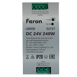 LB008 Трансформатор электронный для светодиодной ленты на DIN-рейку 240W 24V 63*125.5*113мм IP20