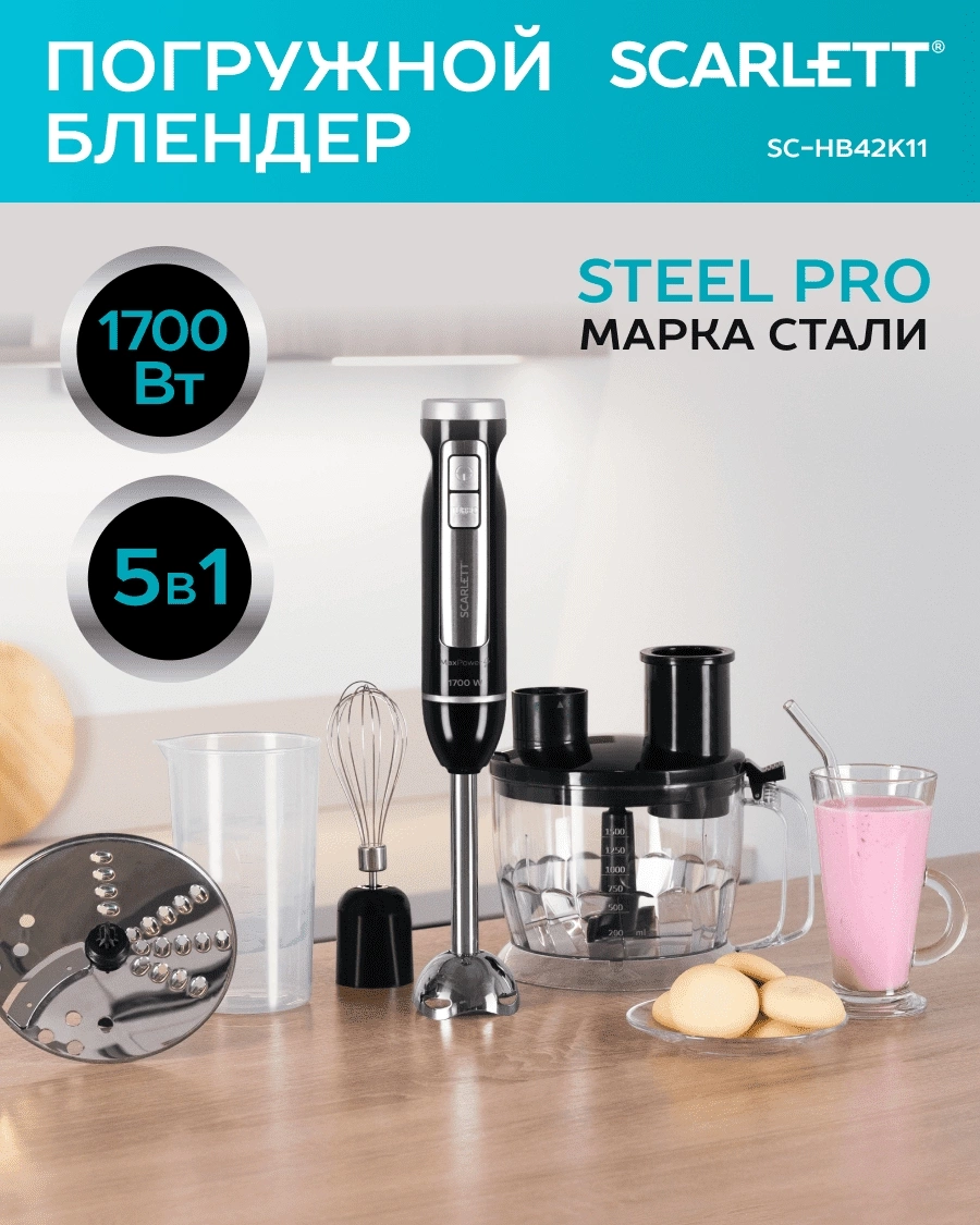 Блендер погружной Scarlett SC-HB42K11 1700Вт черный