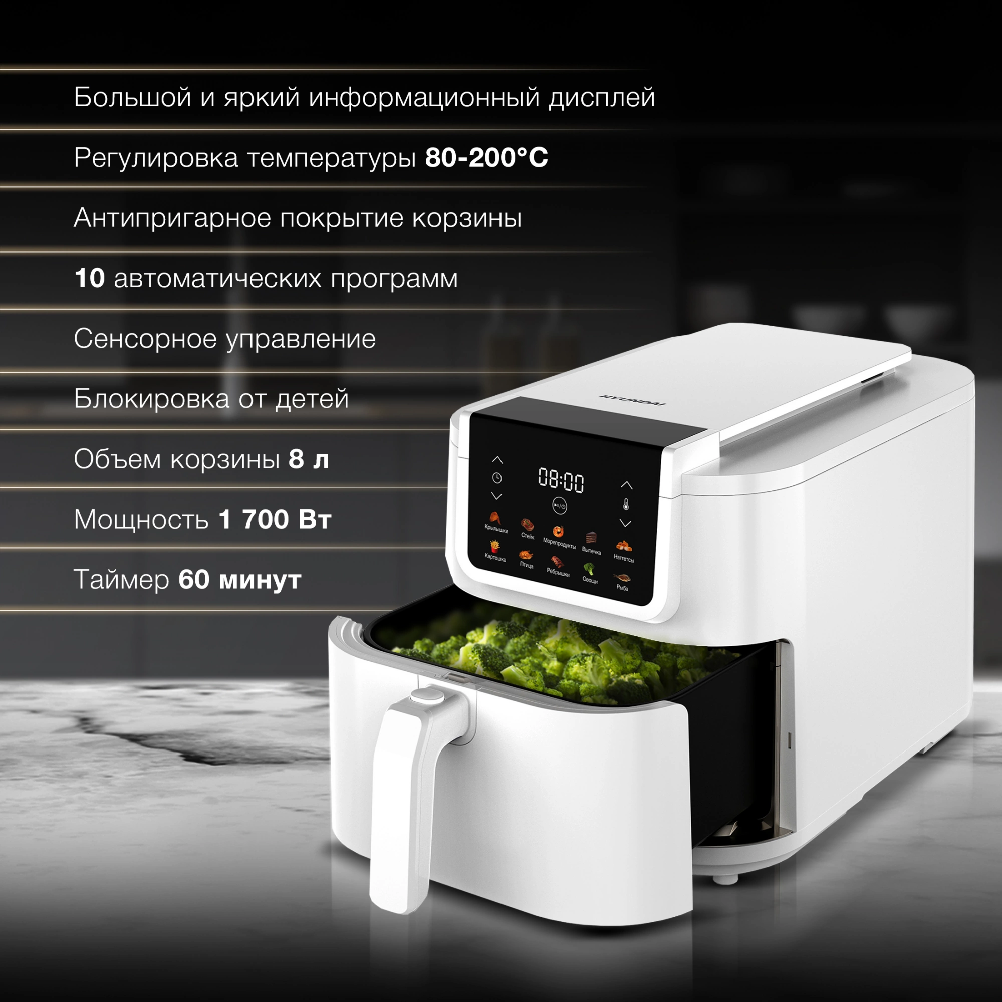 ОписаниеАэрогриль позволяет готовить с минимальным количеством масла или совсем без него. Блюда будут более полезными, с хрустящей корочкой снаружи и нежная внутри.