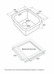 Размер мойки 44,6 x 44,6 см
