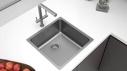 Мойка кухонная PAULMARK YUNI 44 UNI YU44-GM вороненая сталь Изготовлена из аустенитной нержавеющей стали марки AISI 304, имеющей низкое содержание углерода. Нержавеющая сталь AISI 304 легирована 18% хрома и 8% никеля, что делает данную мойку не подверженной деформации и обеспечивает прекрасные эксплуатационные характеристики. Благодаря использованию стали AISI 304 мойка не подвержена деформации, выдерживает большой вес посуды, продуктов и измельчителя пищевых отходов, устойчива к термическим воздействиям, устойчива к образованию ржавчины, не задерживает загрязнения на поверхности, безопасна для здоровья и легка в уходе и чистке. Тип мойки - встраиваемый Цвет: вороненая сталь Размеры: Размер мойки 44 x 44 см Глубина 20 см Характеристики: Установка - врезная Форма - квадратная Количество - одна основная чаша Материал - нержавеющая сталь Монтаж - встраиваемая сверху Доставка по Минску и РБ! Гарантия: 5 лет Импортеры: Частное предприятие «Мир моек», г. Минск, ул. Семенова, 15-78