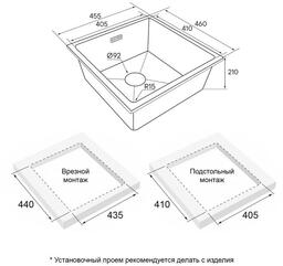Размер мойки 45,5 x 46 см