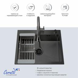 кухонная мойка ceruttispa nano black gloria50b 50x50 графит